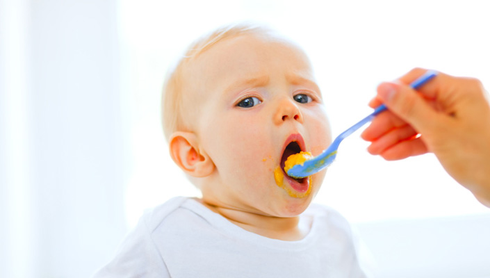 A partir du 4e mois, la diversification alimentaire va débuter pour initier l’enfant à des saveurs différentes de celles du lait et répondre à de nouveaux besoins. En cas d’allergie, elle peut être repoussée à 6 mois.