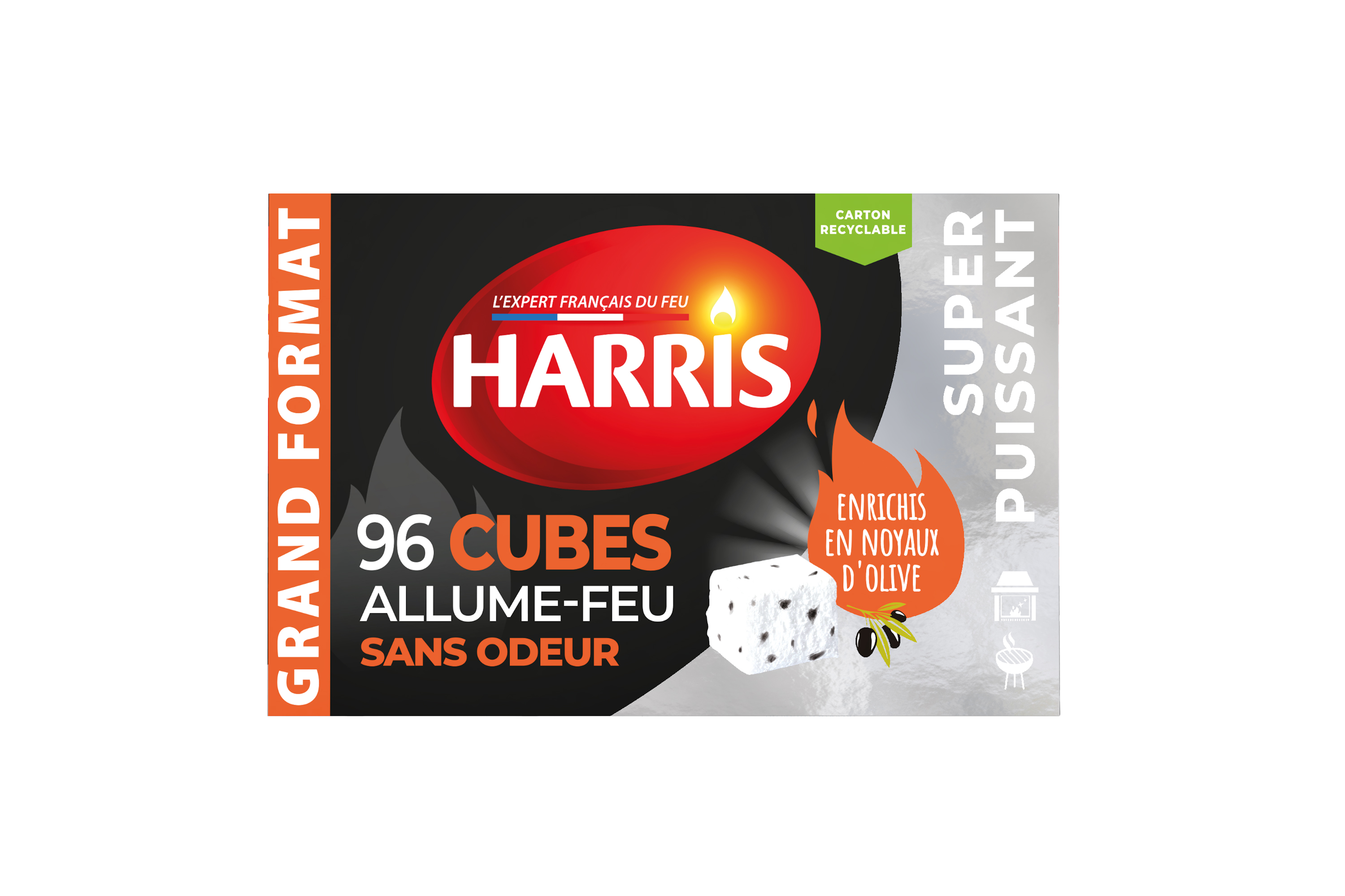 Déjà disponibles en petit format de 40 cubes, ils se déclinent désormais dans un généreux format. HARRIS voit les choses en grand pour ses utilisateurs. Enrichis en noyaux d’olive broyés, ces 96 cubes super puissants sans odeur désagréable facilitent le démarrage du feu, accélèrent la performance et offrent une combustion longue durée. De plus, ils n’altèrent pas la saveur des aliments. De plus, ils n’altèrent pas la saveur des aliments. Ces cubes superpuissant HARRIS, garantissent un feu simple, sûr, rapide et efficace même par temps venteux ou capricieux. Une solution pratique pour des barbecues estivaux sans tracas. Proposé dans un emballage recyclable en carton, ce produit s’inscrit dans la démarche éco-responsable de l’entreprise.