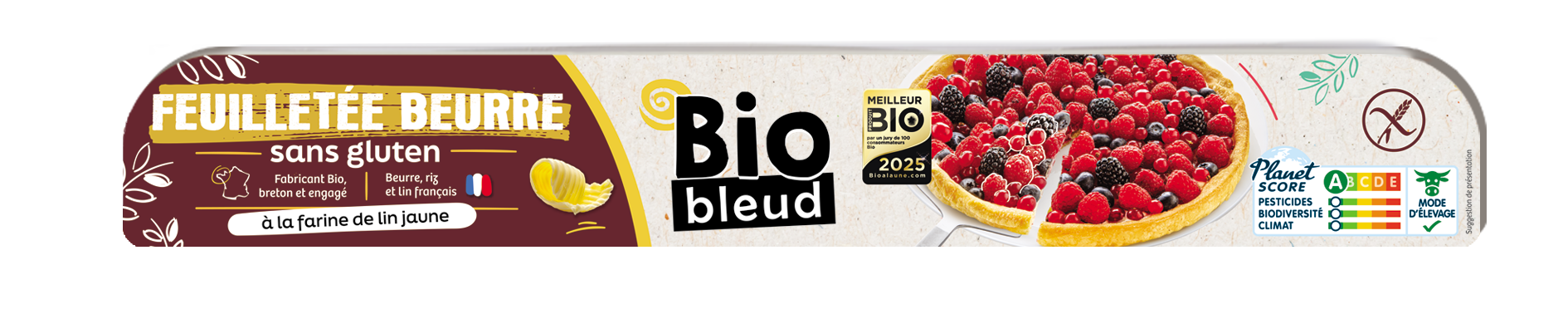 Fabriquée dans le Finistère par Biobleud, PME engagée, l’ensemble de la gamme sans gluten est notée Planet-Score A. Le lait bio utilisé dans le beurre provient des fermes françaises et indépendantes Biolait. Les farines de riz et de lin jaune sont elles aussi issues de cultures biologiques françaises.