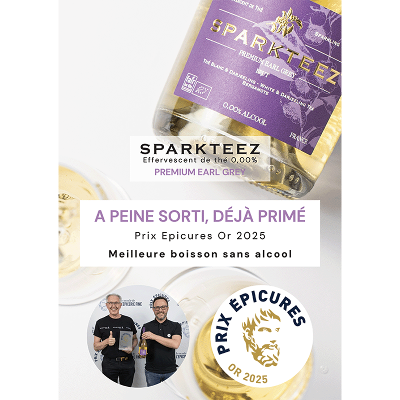 Et de 2 ! Après le Trophée OR NATEXPO en 2022, SPARKTEEZ s’offre le Prix Epicures Or 2025 de la meilleure boissons sans alcool avec sa recette « Premium EARL GREY ».
