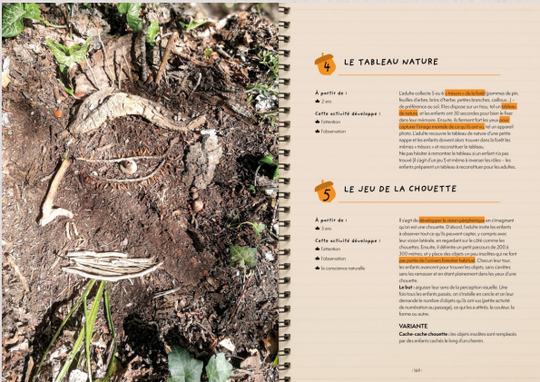Entre pédagogie, principes éducatifs et cahier d’activités, ce livre écrit avec la coopération du Réseau de Pédagogie Par la Nature propose un panorama complet des différentes façons de faire « l’école en forêt ». Au sommaire de cet ouvrage richement illustré vous trouverez : • des explications sur l’intérêt de la Pédagogie Par la Nature pour se reconnecter à soi-même, aux autres et à la nature ; • des témoignages de parents et de pédagogues; • un cahier de plus de 20 activités ludiques et pédagogiques à proposer aux enfants dès leur plus jeune âge jusqu’à l’adolescence.