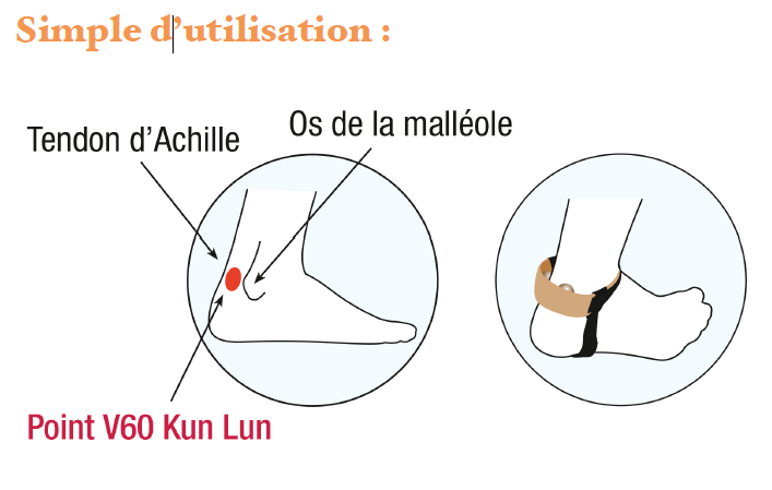 En prenant la forme d’un bracelet très discret, EasyDaDa se place facilement autour de la cheville (celle de votre choix). Une fois ajusté à votre pied, vous devez sentir UNE TRÈS LÉGÈRE PRESSION (sur le point V60) qui s’oublie au bout de quelques minutes.