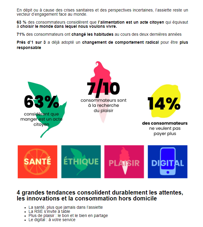 4 grandes tendances consolident durablement les attentes, les innovations et la consommation hors domicile