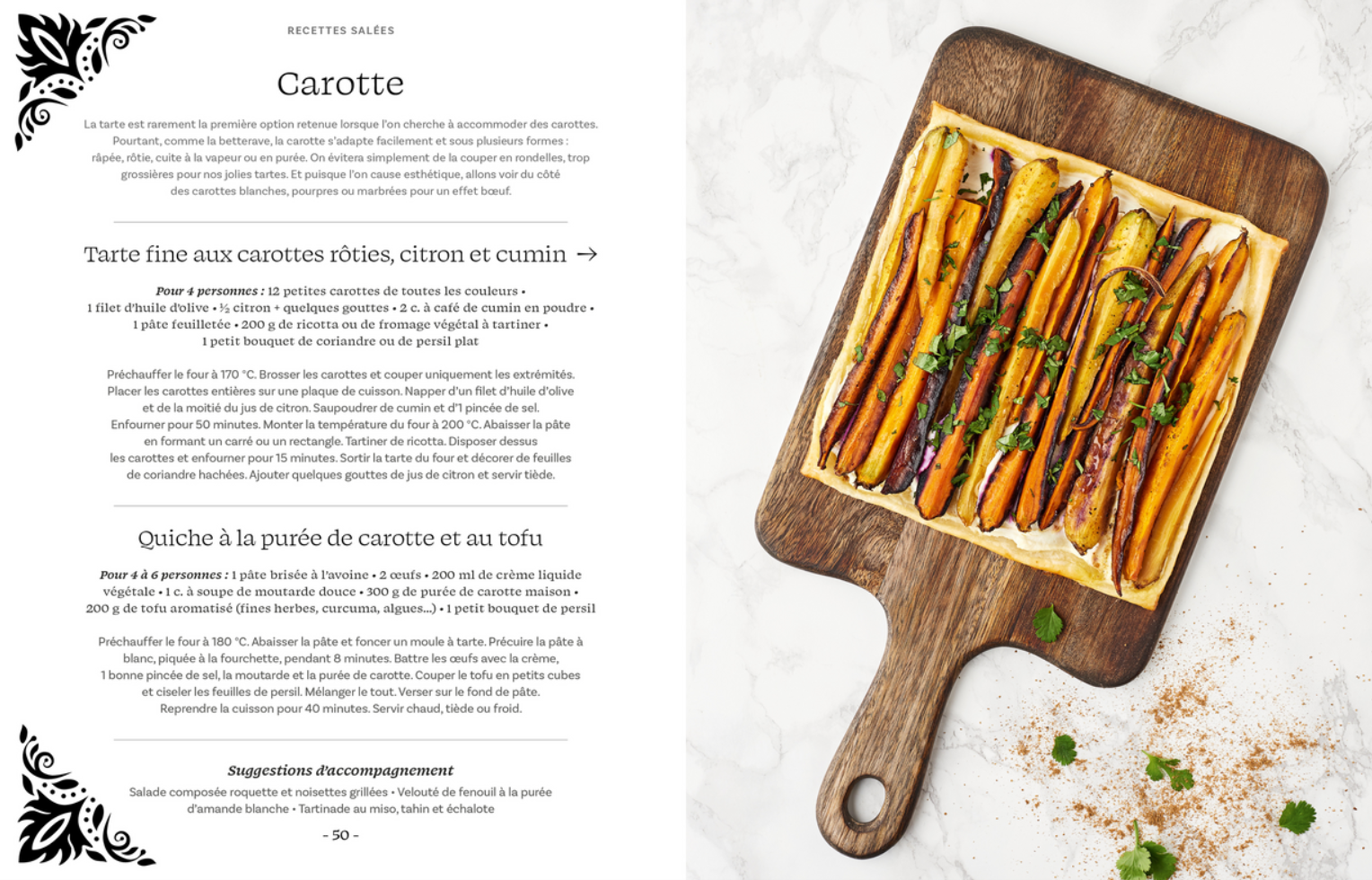 • Avec des suggestions d’accompagnement pour les tartes salées pour en faire des repas veggies et équilibrés.