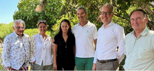De gauche à droite : Raphaël Allouch – Directeur Général Délégué aux Affaires Financières, Juridiques et Sociales Compagnie Léa Nature ; Sonia de Saint-Ours – Directrice Contrôle Budgétaire et Participations Compagnie Léa Nature ; Sophie Berdoues-Coudouy – Directrice Générale Groupe Berdoues ; Charles Kloboukoff – Président-Fondateur Compagnie Léa Nature ; Hubert Sizaire – Cabinet Actéo ; Richard Madignier – Directeur Trésorerie et Comptabilité Compagnie Léa Nature.