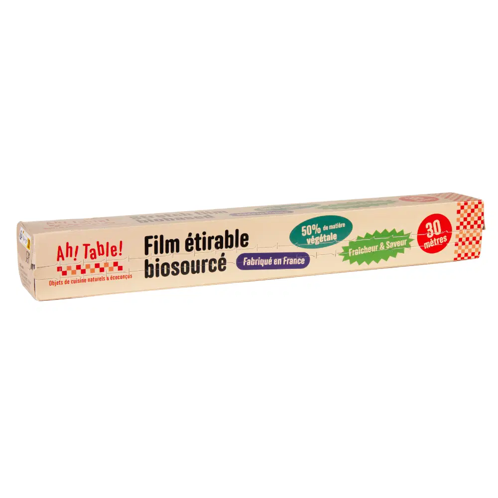 MAISON ECOLOGIQUEFilm étirable biosourcé ECODIS (Ah! Table!) Ce film étirable biosourcé constitue une alternative durable aux films plastiques fossiles. À la fois pratique au quotidien et respectueux de l’environnement, il permet de réduire l’empreinte écologique tout en offrant une solution moderne et responsable pour préserver et protéger les aliments.