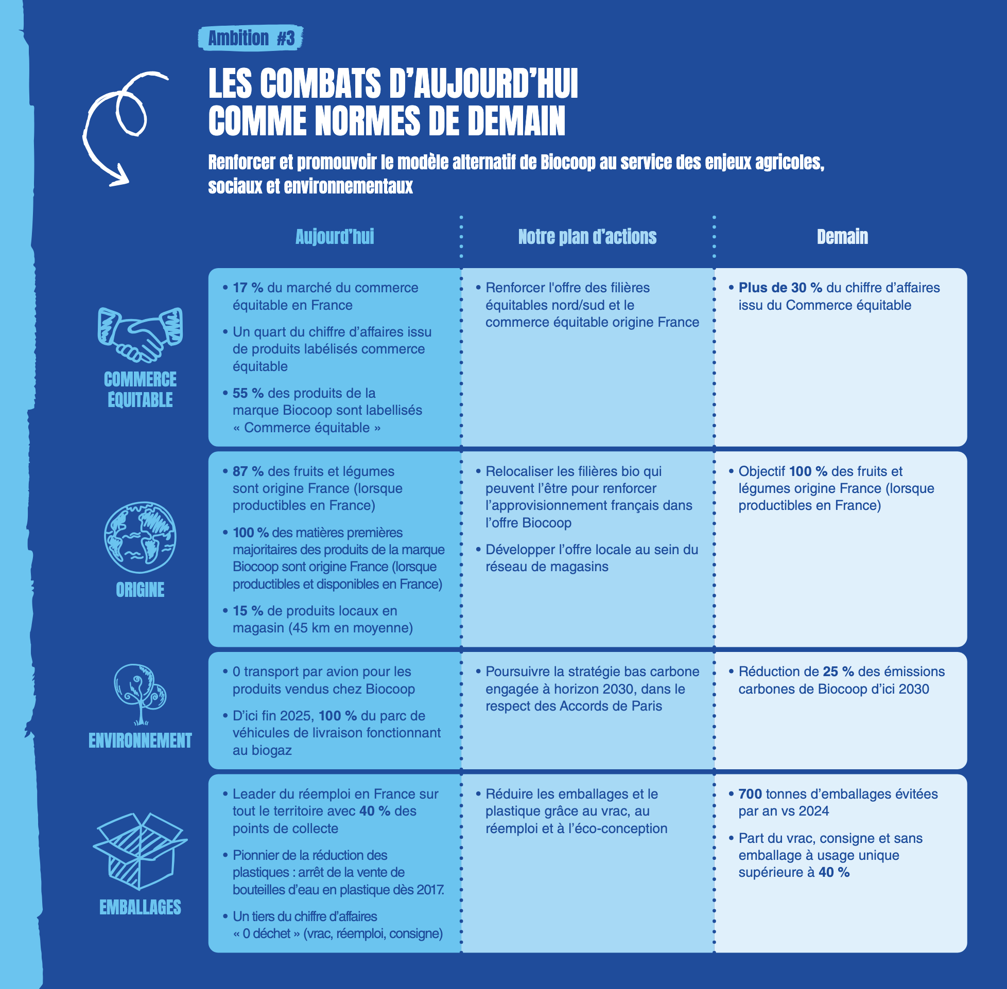 - Renforcer et promouvoir le modèle alternatif de Biocoop au service des enjeux agricoles, sociaux et environnementaux