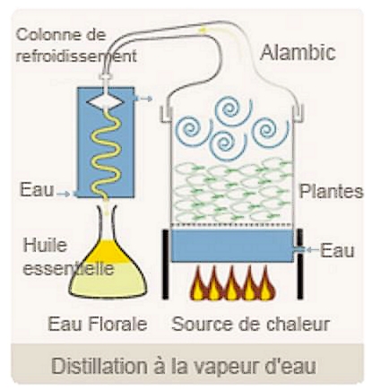 La même opération permet donc d’obtenir deux produits différents : l’huile essentielle et l’hydrolat, par exemple d’une part eau de rose et huile essentielle de rose avec des boutons ou des pétales de rose, ou huile essentielle de néroli et eau de fleur d’oranger avec des fleurs de bigaradier.