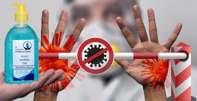 Un gel désinfectant pour lutter contre le coronavirus ? Attention à la qualité (photomontage sur images geralt, Ri_Ya et iXimus via Pixabay).