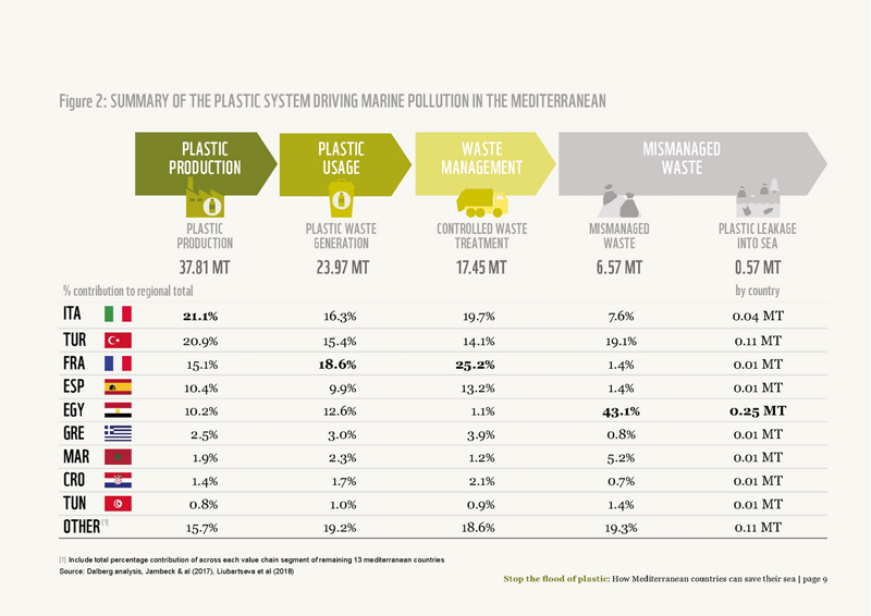Tableau extrait du rapport WWF 2019 « Stop the flood of plastic: How Mediterranean countries can save their sea ».